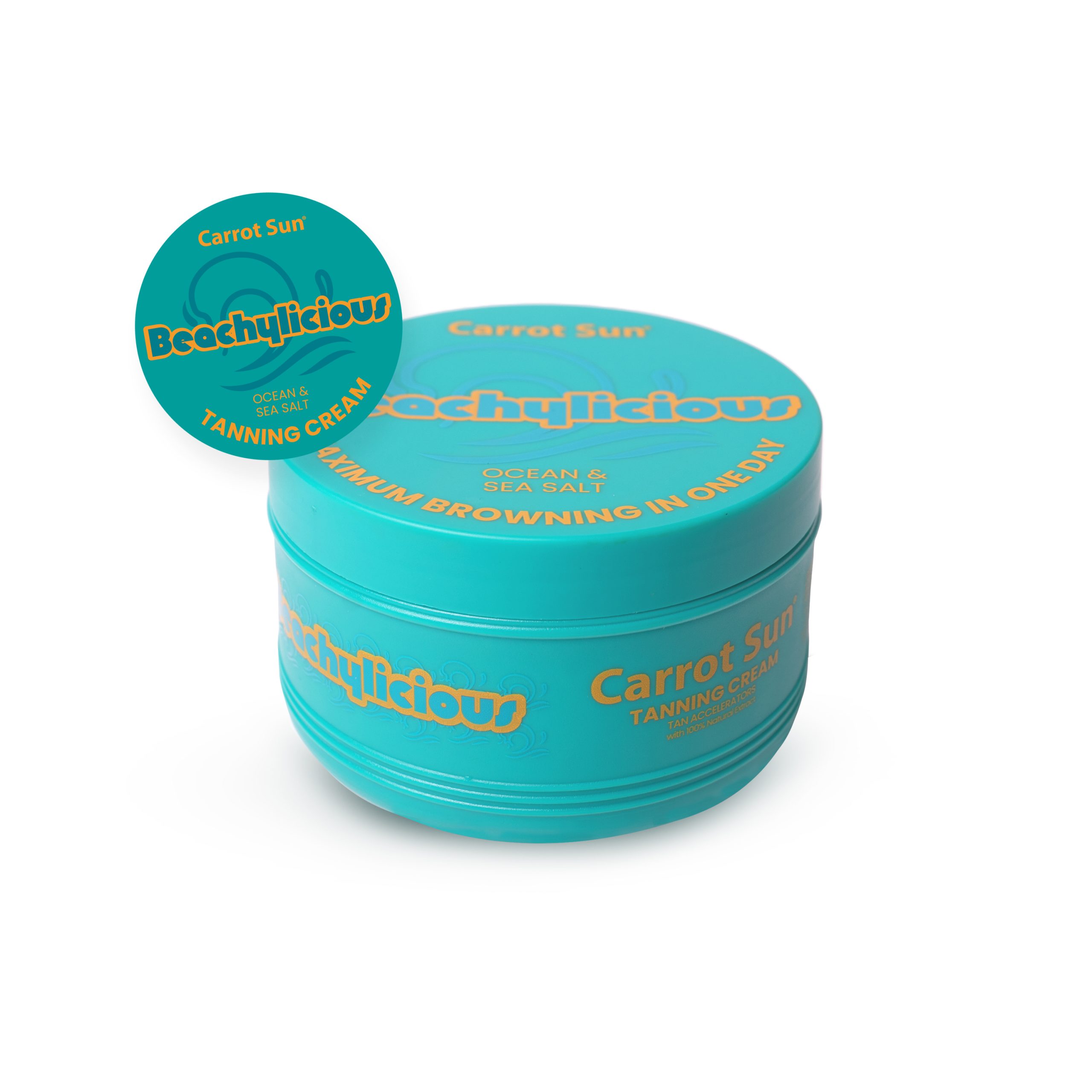 Introducing Beachylicious, Carrot Sun’s invigorating Ocean & Sea Salt tanning oil, crafted to give you a fast, deep, and long-lasting tan while evoking the fresh, energizing scent of the sea. Perfect for beach lovers who want a hydrated, radiant tan with a cool ocean vibe.